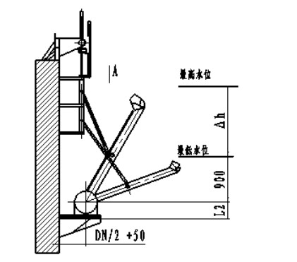 潷水器由浮動進水頭,特制排水伸縮膠管,排水彎管,控制電磁閥,輸氣軟管等組成.需排水時(水位一般在最高位置)進氣電磁閥自動關閉,排氣電磁閥自動打開,浮動進水頭環形空氣室內的空氣排出,浮動頭下沉淹沒四個進水口,開始排水.單位時間排水量,可在最大排水量以內用調節螺栓調節,以控制排水時間.排水經浮動頭中心管進入伸縮管及排水彎管排出池外,浮動頭隨水位下降而下降,伸縮膠管逐漸壓縮,當至低水位時,水位訊號器發出訊號,排氣電磁閥自動打開,向浮動頭環形氣室內通入壓縮空氣(氣壓≮5kPa),浮動頭上浮,進水口離開水面,停止排水,多余空氣自排氣管排出,浮動頭隨池內水位上升而上升,直至最高位置,進入下一循環.